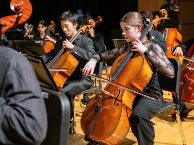 Our Symphonic Orchestra performs rigorous original repertoire such as Copland’s Billy the Kid Ballet Suite, Tchaikovsky’s Capriccio Italien, Glinka’s Ruslan and Ludmilla Overture, Gershwin’s An American in Paris, and Tchaikovsky’s Symphony No. 3.